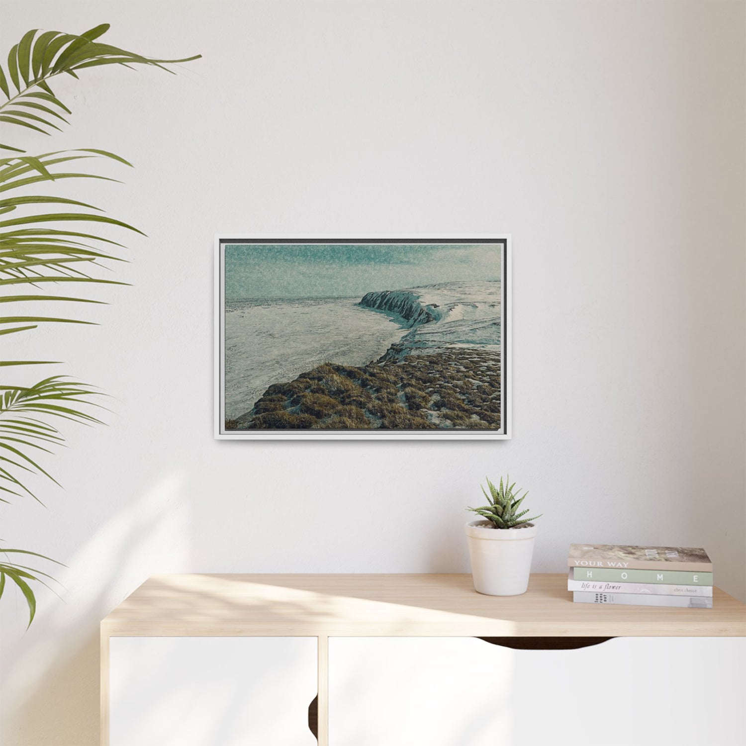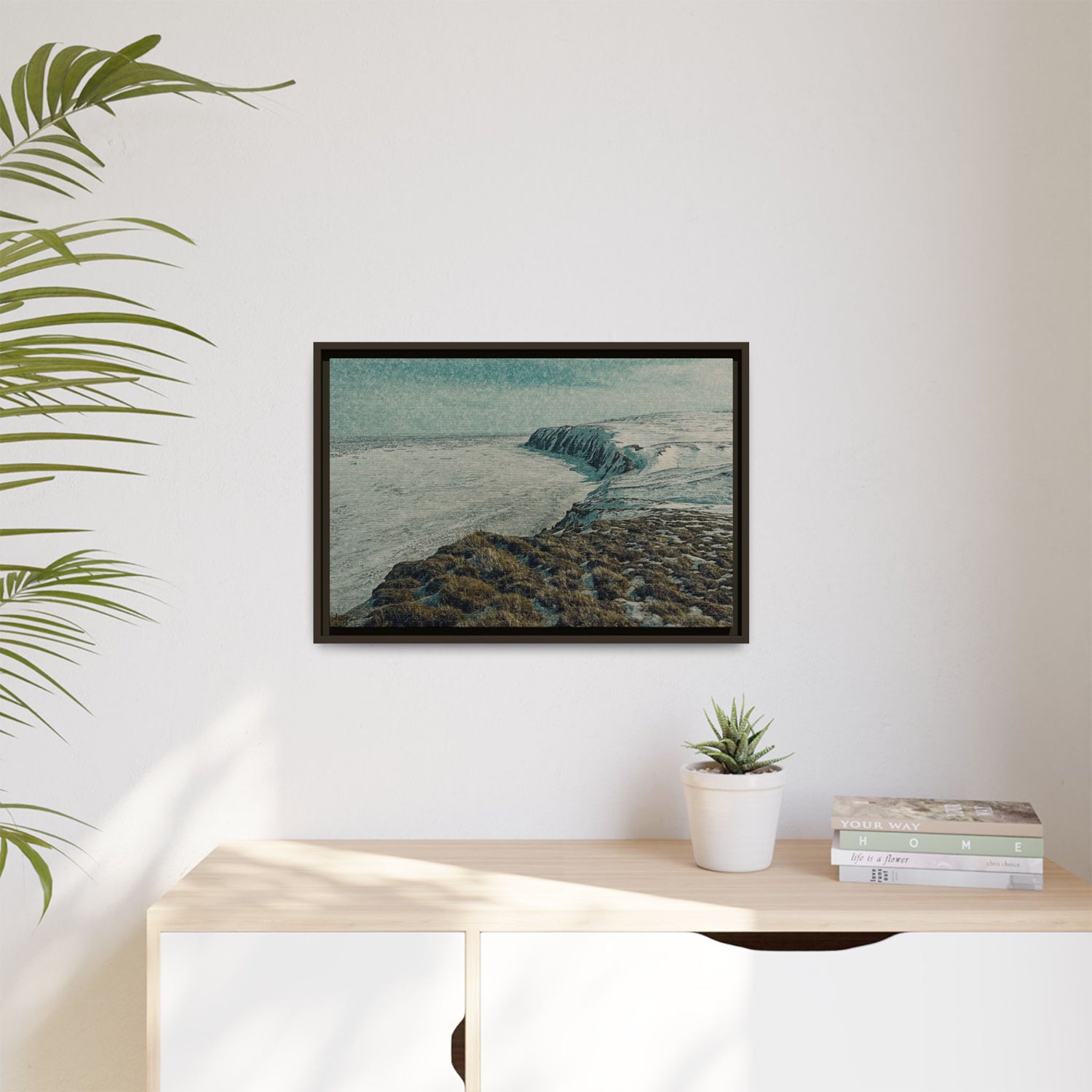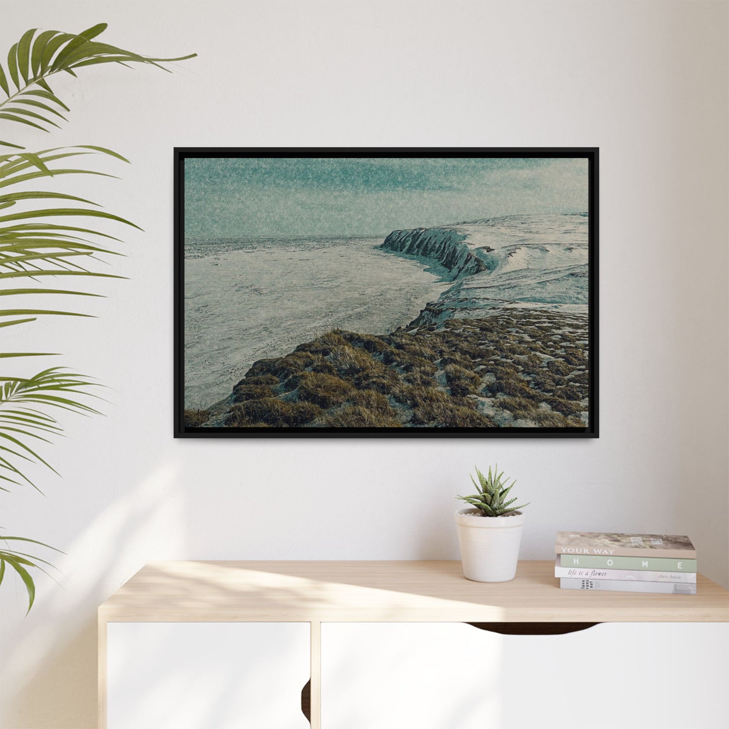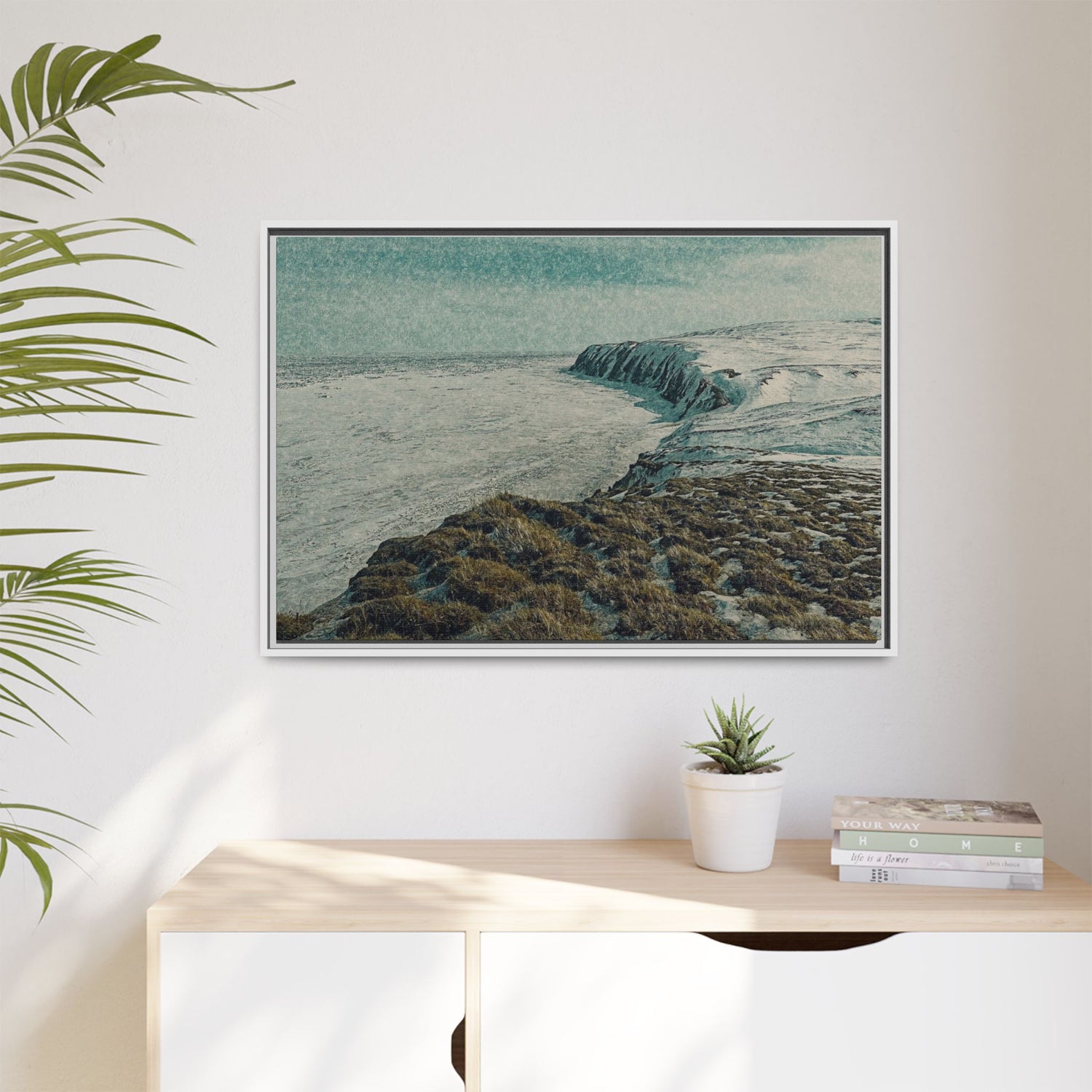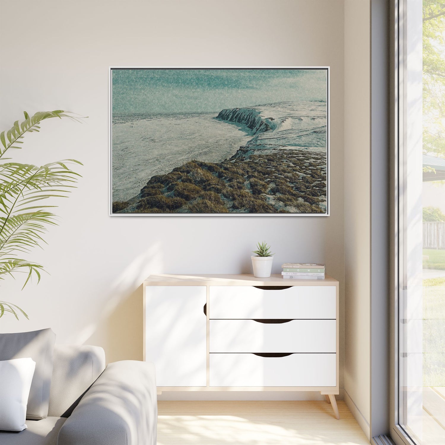 The rugged shoreline meets icy expanses beneath a muted sky, painted with textural layering and cool tones. The artwork evokes both calm and command, embodying the stark beauty of the Arctic coast. Ideal as a centerpiece, it brings a sense of remote wilderness into modern interiors.