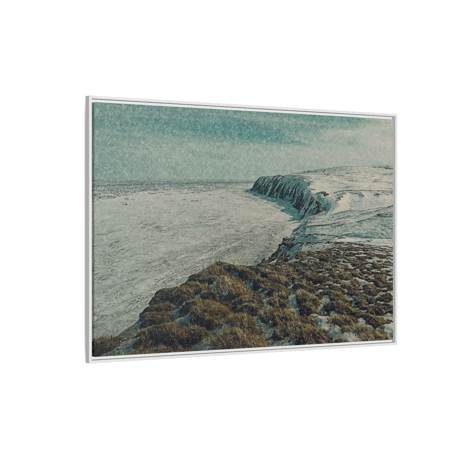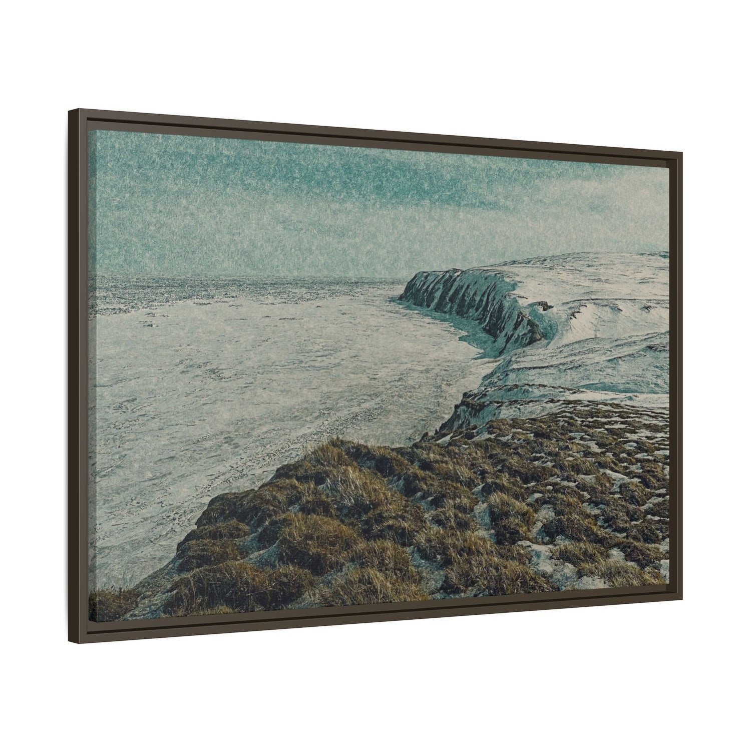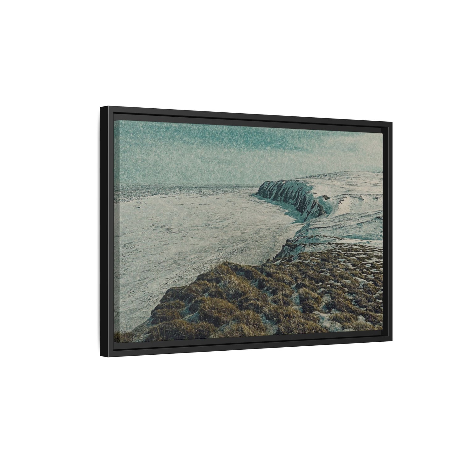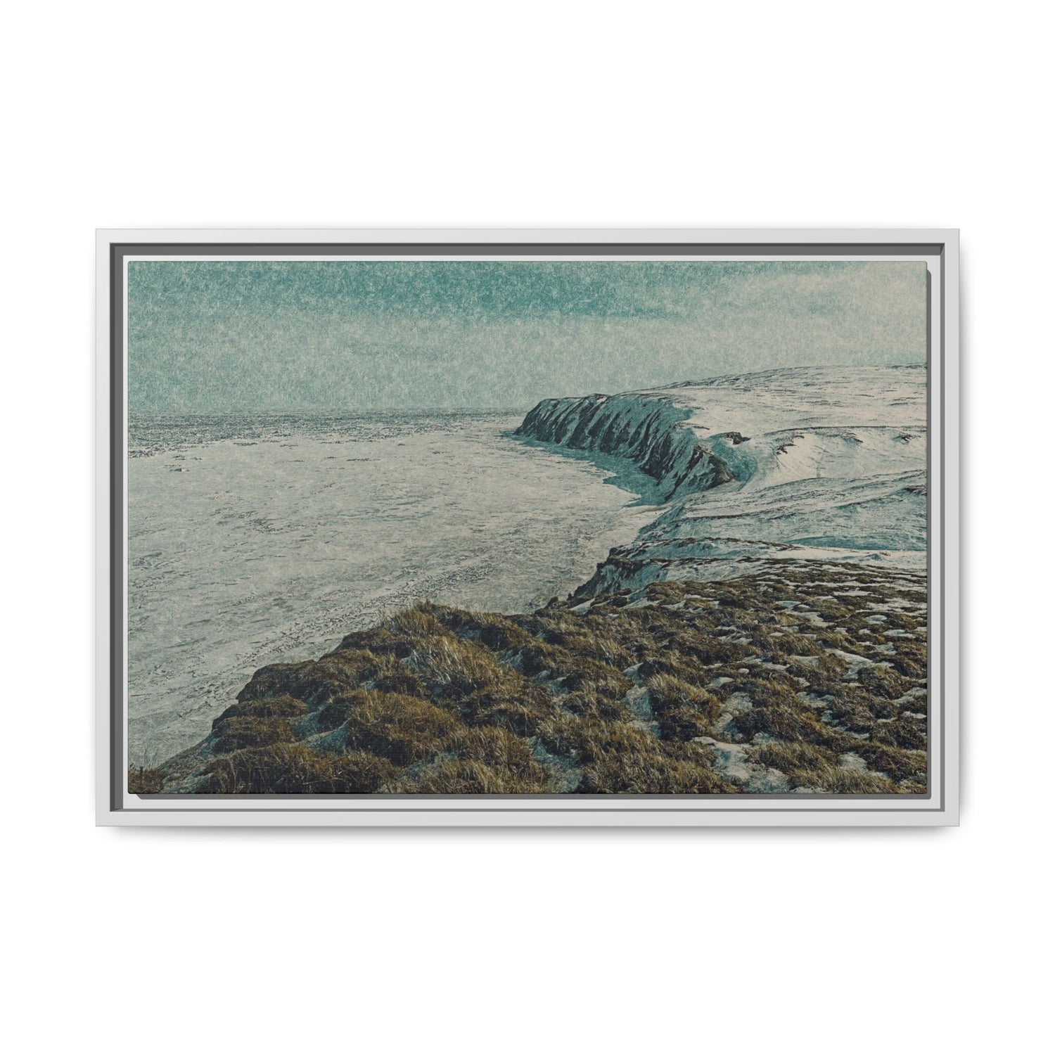 This fine art piece captures the snow-covered cliffs of Herschel Island–Qikiqtaruk Territorial Park, overlooking the vast Beaufort Sea in late winter.