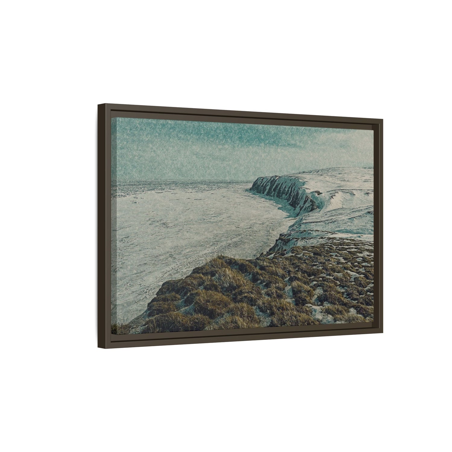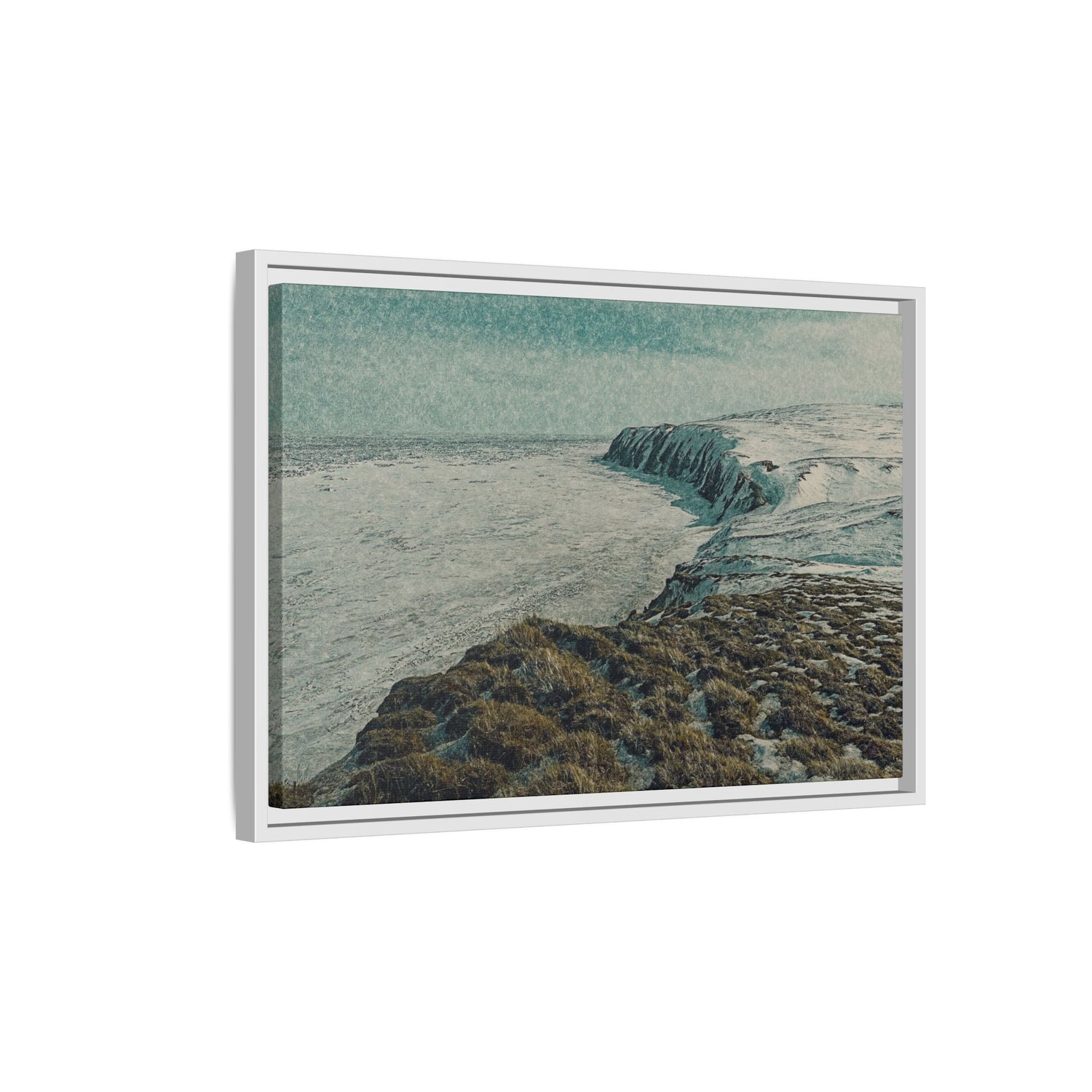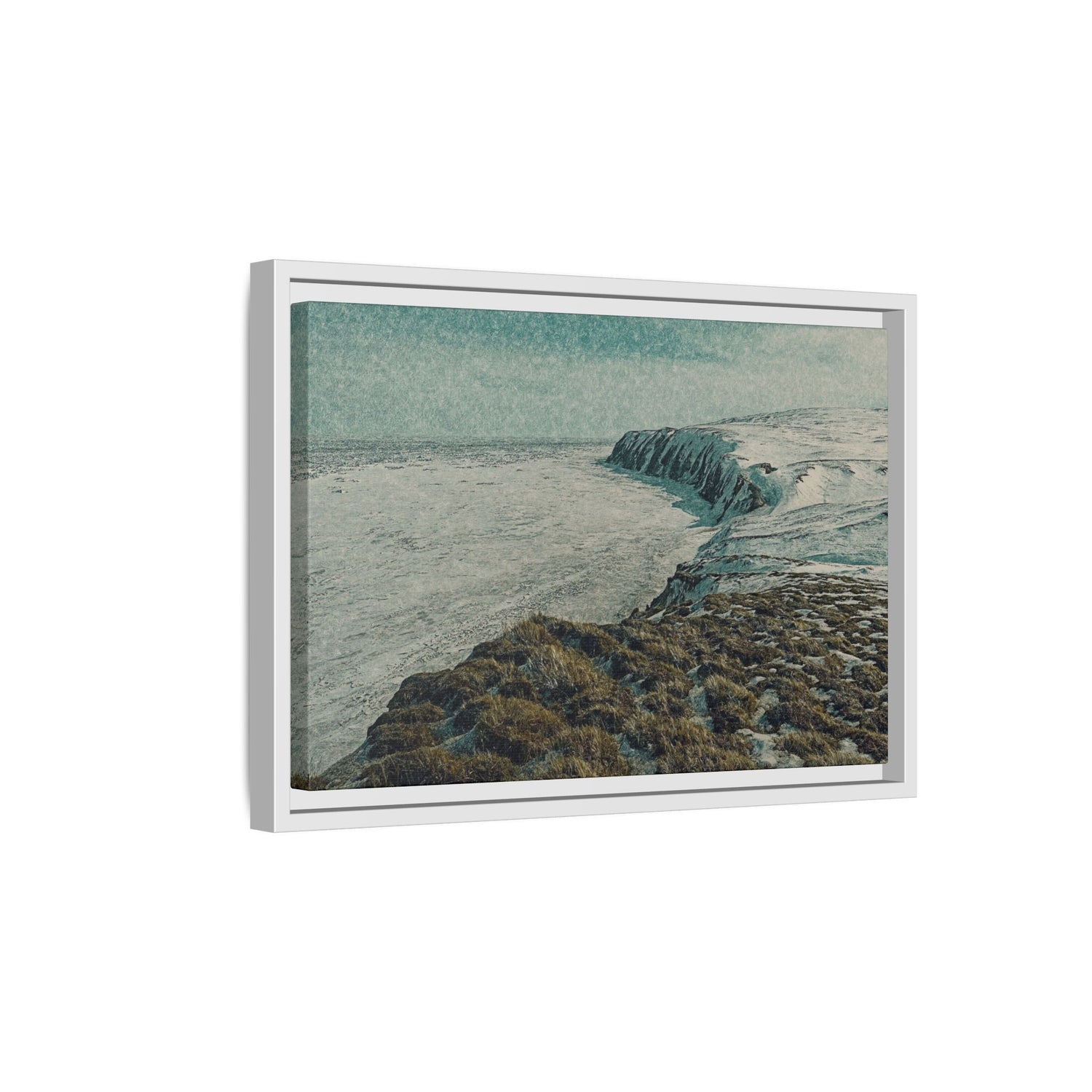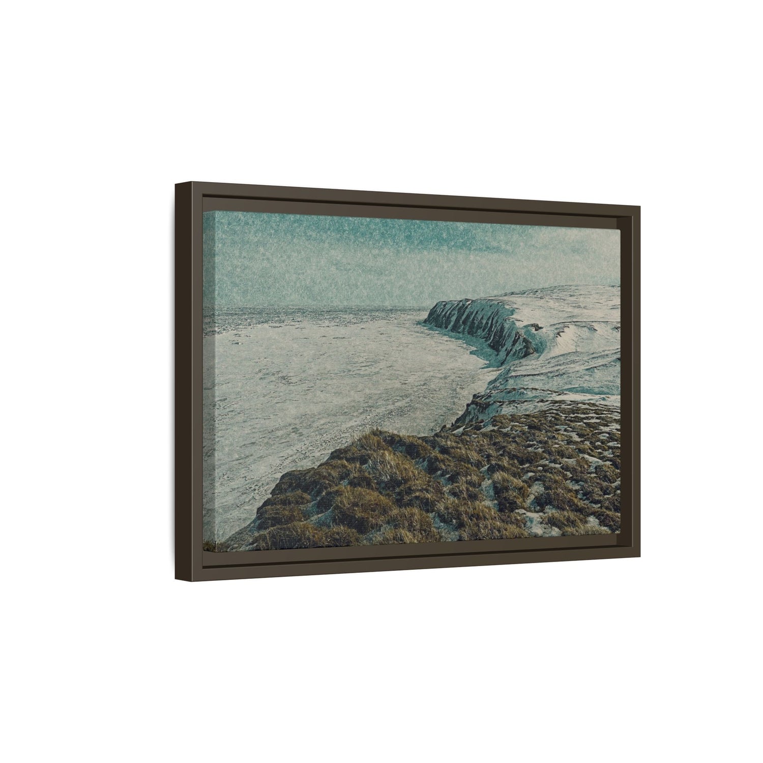 This fine art piece captures the snow-covered cliffs of Herschel Island–Qikiqtaruk Territorial Park, overlooking the vast Beaufort Sea in late winter.